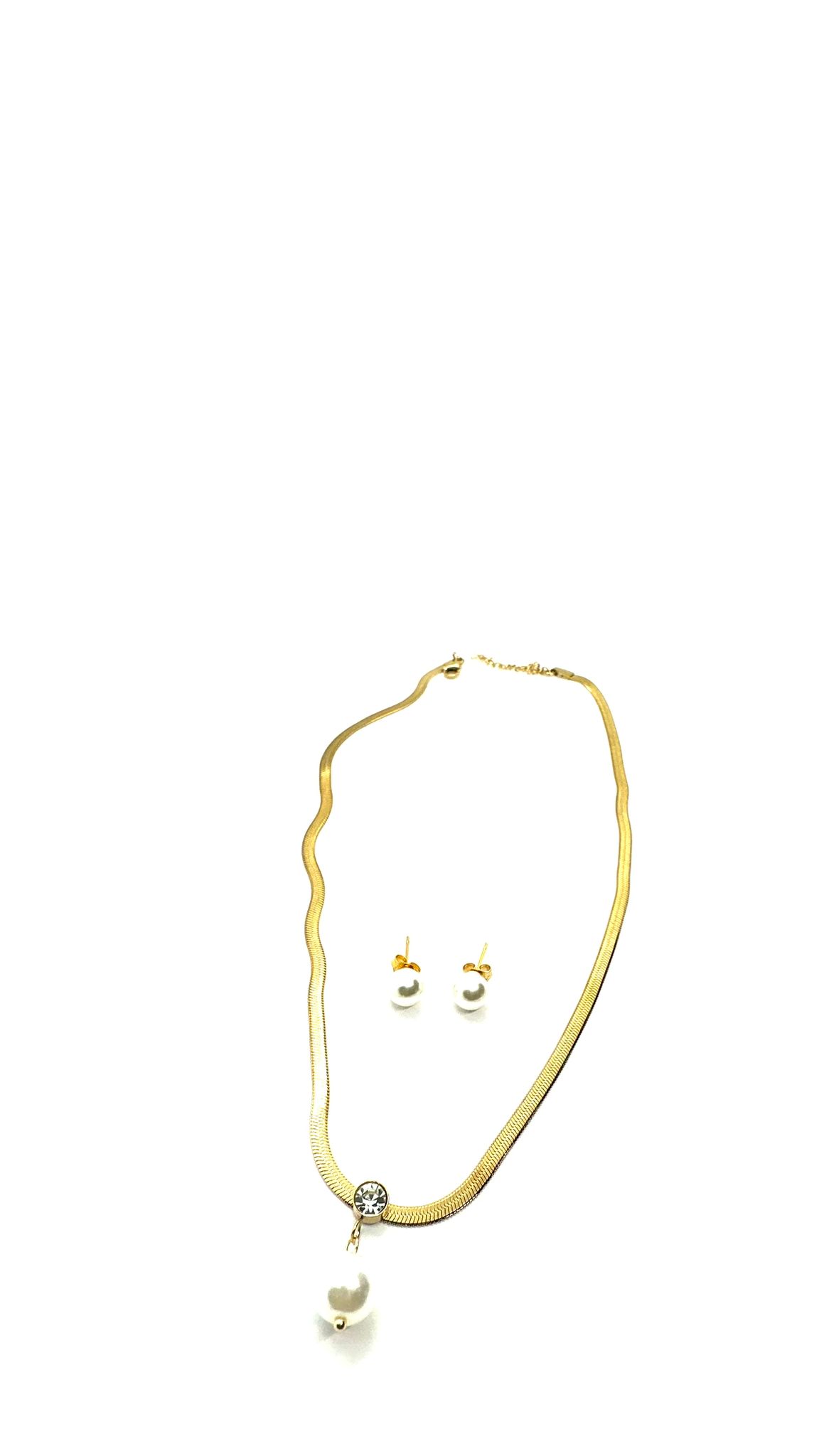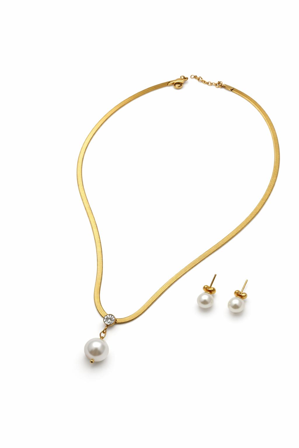 Un bijou qui incarne la grâce et la simplicité raffinée. Ce collier doré, orné d’une perle suspendue et d’un éclat cristallin, s’accompagne de boucles assorties pour une harmonie parfaite. La chaîne fine et polie épouse le cou avec délicatesse, tandis que la perle centrale reflète une élégance intemporelle. Porté en toute occasion, ce set illumine le style avec une touche de modernité et de classicisme.